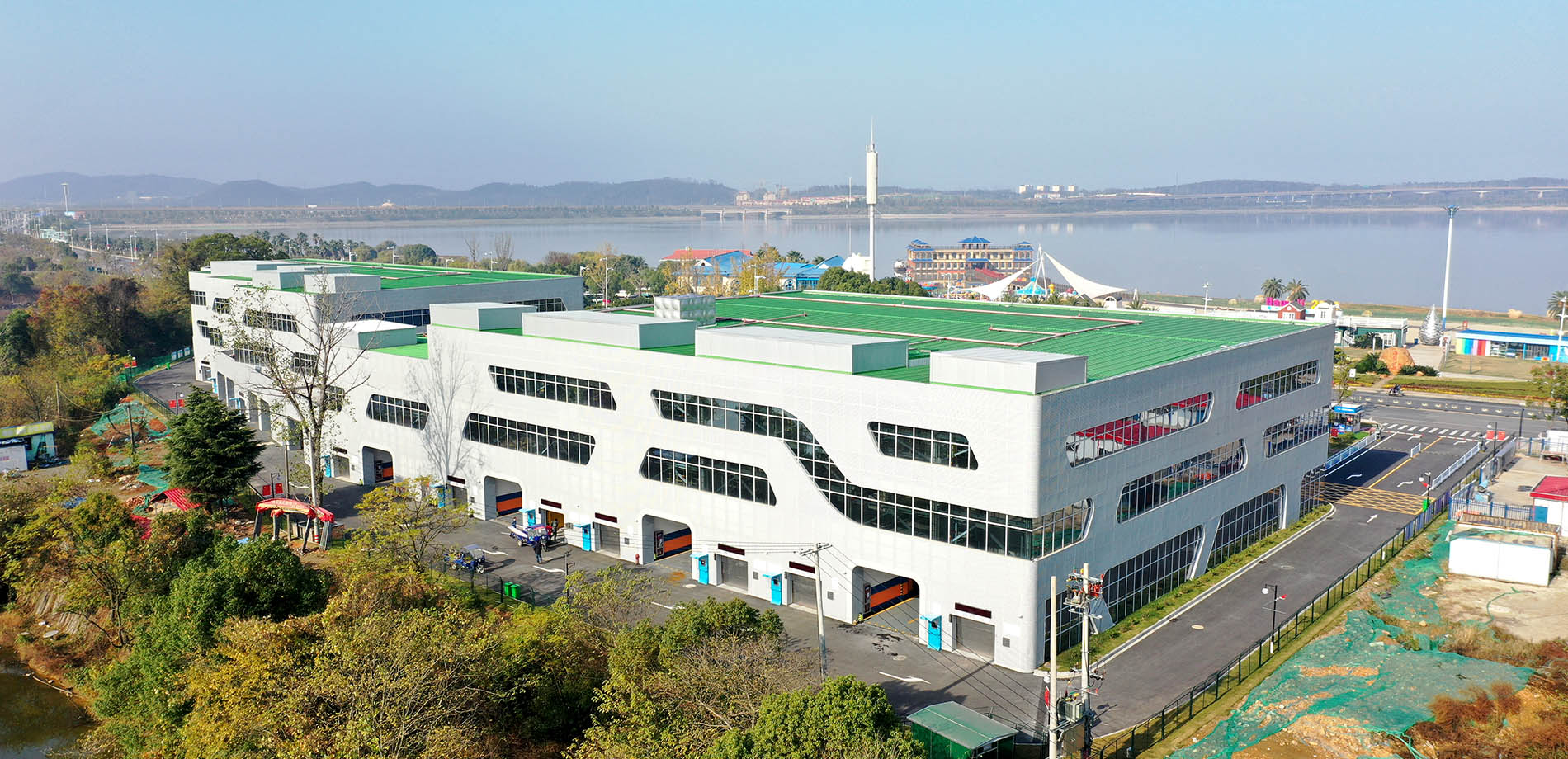 項目結(jié)合周邊環(huán)境,采用平面移動類立體智能車庫,整個車庫5層,可容納近千個車位,智能化程度高。設(shè)計取法自然,外觀造型優(yōu)美,車庫與周邊環(huán)境和諧相生。2020年榮獲“國內(nèi)最美智能立體車庫”獎。