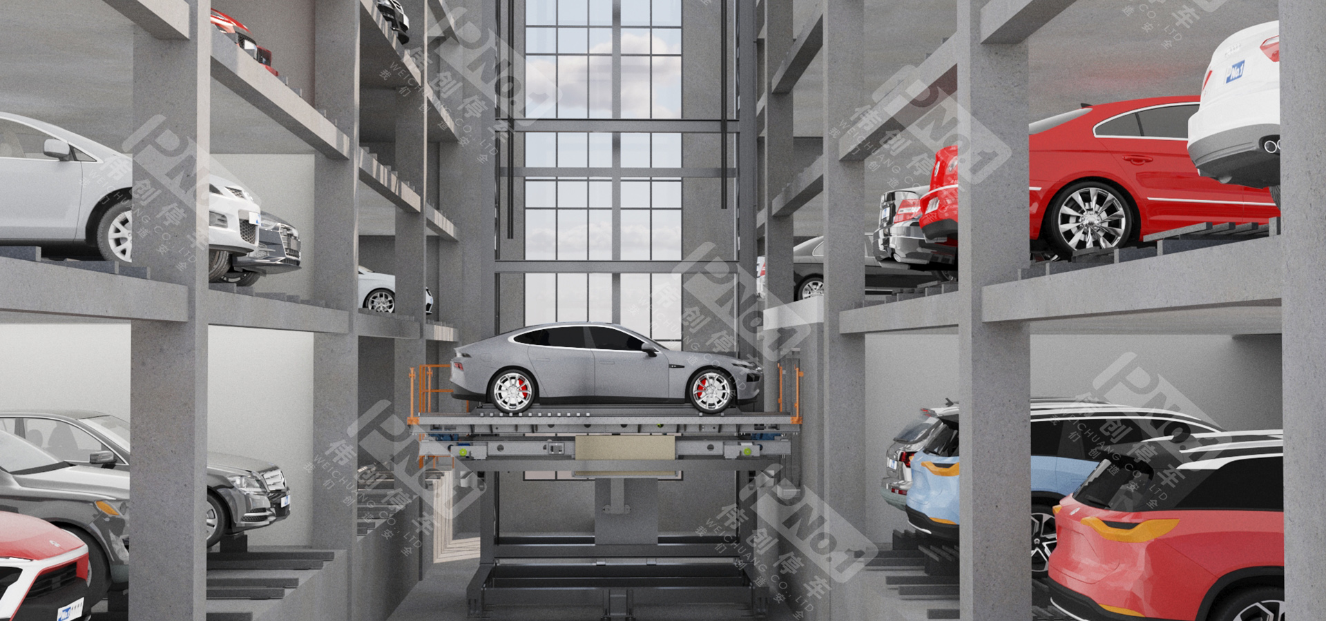 偉創(chuàng)巷道堆垛類機械停車設(shè)備采用先進的計算機控制,是一種集機、光、電、自動控制為一體的全自動化機械式停車設(shè)備。使用堆垛機將汽車水平且垂直移動到停車位旁,并運用機械手搬運器或堆垛機上的存取機構(gòu)將汽車存入,反之取出。